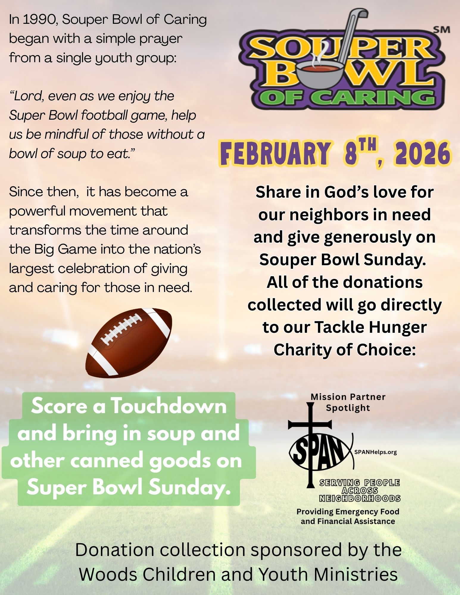Alternatively, you may give online at woodschurch.org. The last option is to text “WOODS NLR” to 73256 from your mobile device.