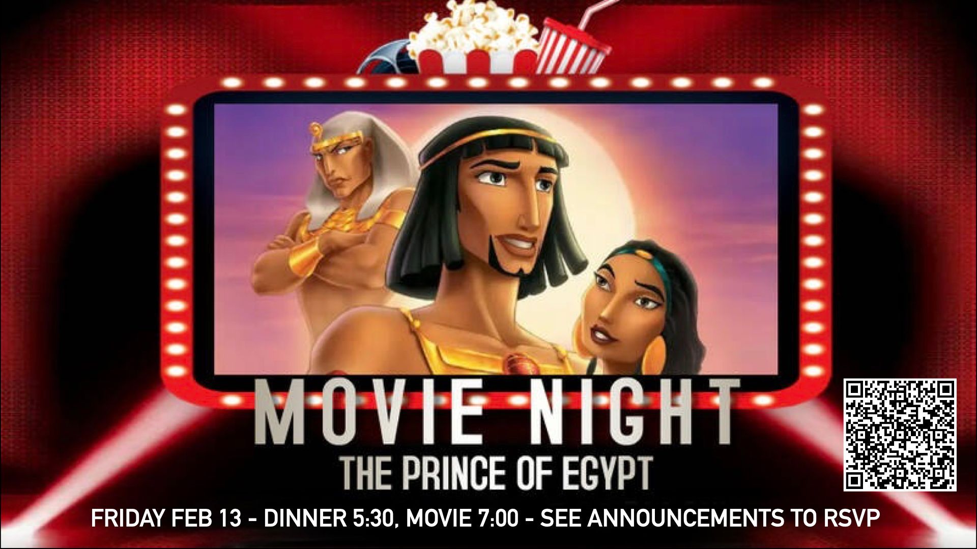 We are excited to announce our Prince of Egypt Movie Night on Friday, February 13, 7PM. We will be having a potluck dinner and viewing of the DreamWorks version of Prince of Egypt. Dinner begins at 5:30PM in the Fellowship Hall, followed by the movie in the Sanctuary at 7PM. Feel free to come for all or just part of this fun gathering. This event is free to all, but we ask that you consider contributing a dish/snack/dessert to share. The church will provide pizza.