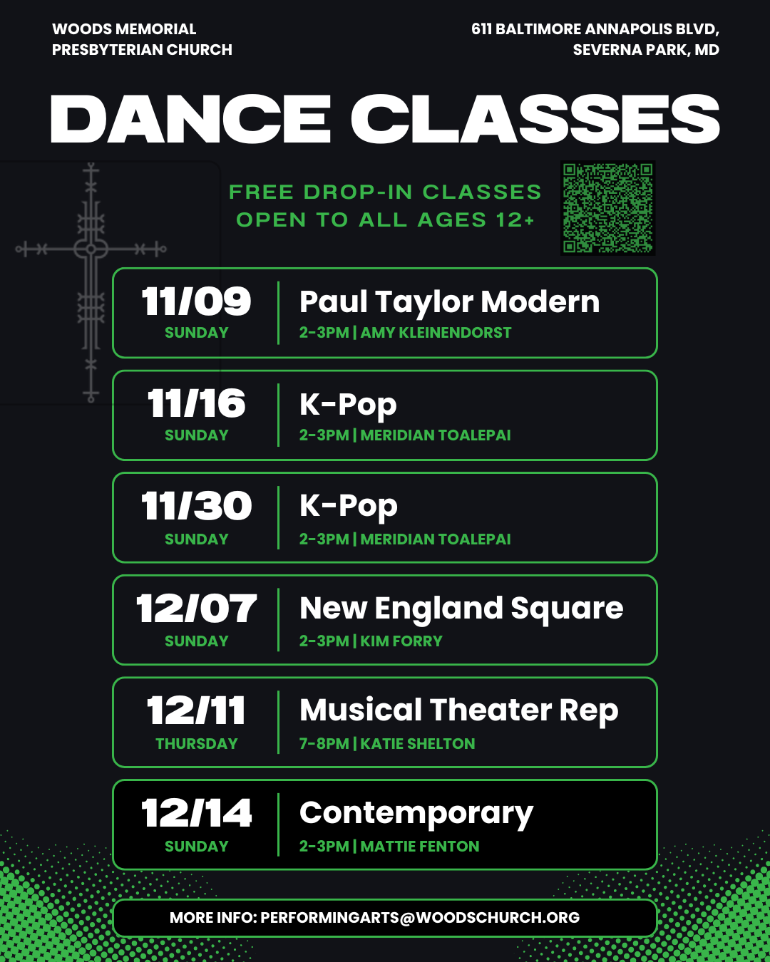 In order to bring our community together in a fun and movement-based way, join our Worship Ministry for a series of dance classes this fall! Professional teachers are set to offer a variety of dance styles including jazz, musical theater, contemporary, tap, yoga, and more!