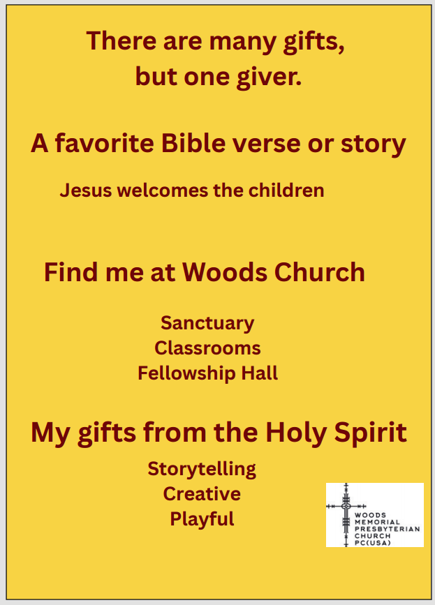 On Sunday, May 18, our K–2 children are learning about gratitude for the gifts that God has given them, creating their own Holy Spirit Trading Cards!